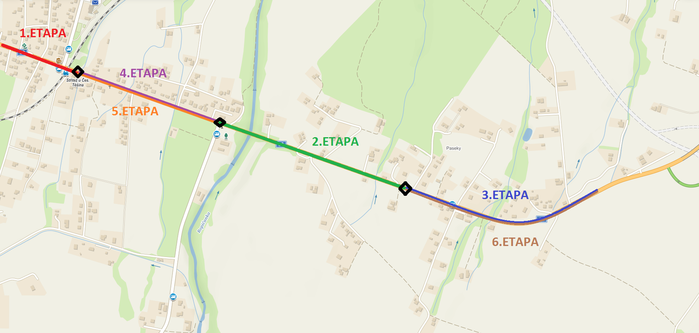 Ve středu 9.6. bude etapa 3 zprovozněna a začneme frézovat (9.6.) původní živici na etapě 4 (viz příloha), následovat bude realizace sanace neúnosného podloží na celé délce tohoto úseku (od 10.6. do cca 16.6.) – pro další urychlení budou práce probíhat včetně víkendu (12.6.-13.6.).
