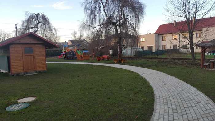 Díky finanční podpoře z Programu obnovy a rozvoje venkova Moravskoslezského kraje, kde jsme získali dotaci ve výši 400 000 Kč, se podařilo realizovat řadu inovací. Vybraly a zakoupily se nové herní prvky, které jsou přizpůsobené dětem od 2 do 7 let, aby pro ně byly atraktivní, bezpečné a současně podporovaly jejich fyzický a mentální rozvoj. Prostor byl navržen tak, aby nabízel široké možnosti využití. Součástí zahrady je altán, který bude sloužit nejen jako prostor pro výukové aktivity, ale také jako dětská kuchyňka a dílnička, kde se mohou děti realizovat a rozvíjet sociální vazby. Děti budou mít k dispozici nejen plochy pro míčové hry, ale i okruh pro bezpečnou jízdu na odrážedlech, kde se zároveň naučí základům pravidel silničního provozu. Celý areál doplnila nová zeleň, která vytvoří klidné prostředí podporující relaxaci a tvořivost.